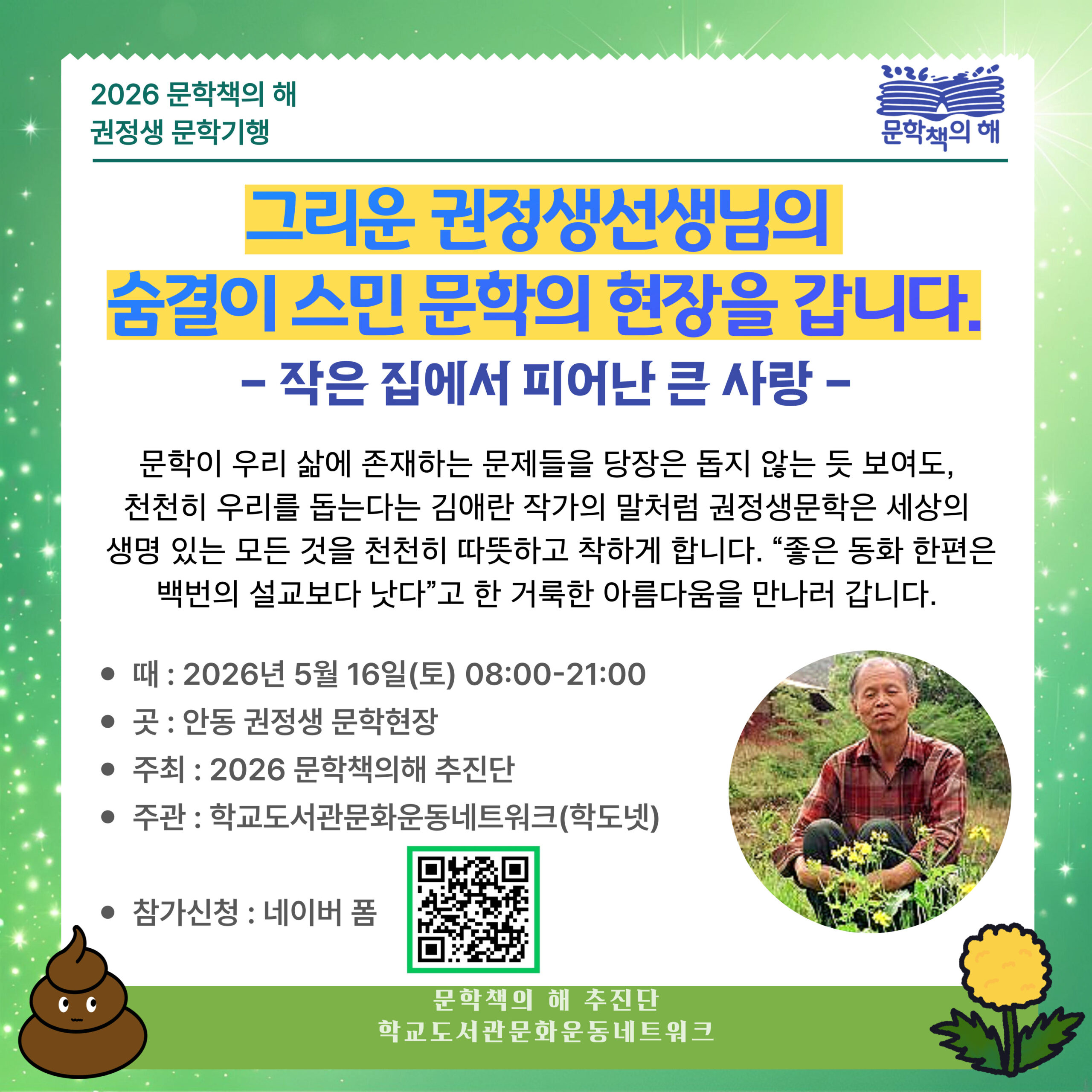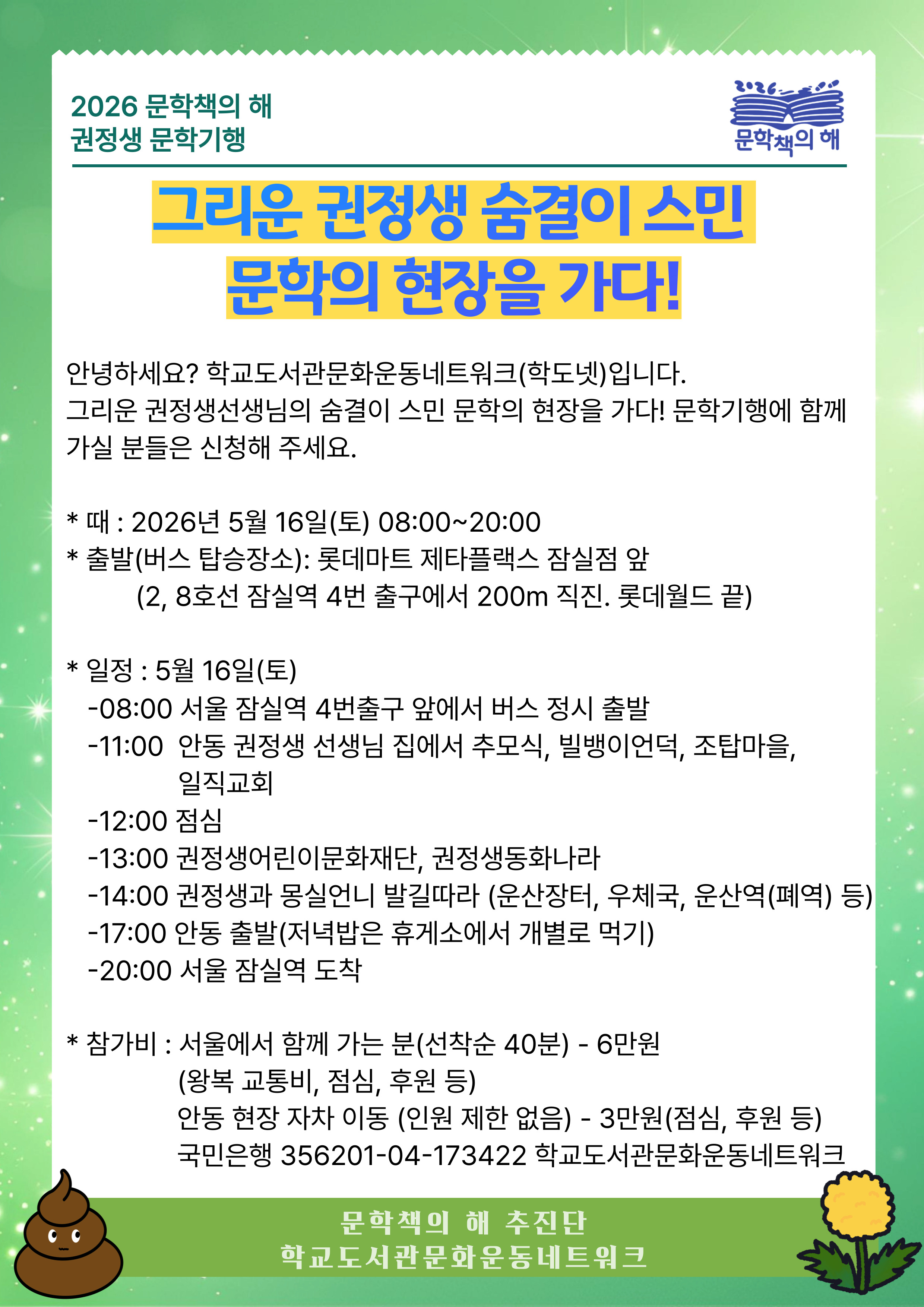 “그리운 권정생선생님의 숨결이 스민 문학의 현장을 가다” 문학기행에 함께 가실 분들은 신청해 주세요.