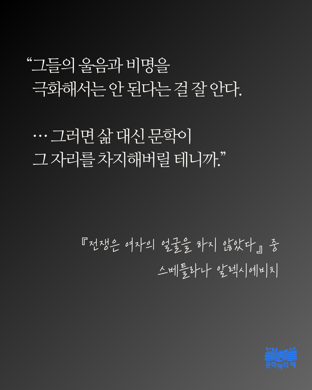 💬” “그들의 울음과 비명을 극화해서는 안 된다는 걸 잘 안다. … 그러면 삶 대신 문학이 그 자리를 차지해버릴 테니까.”