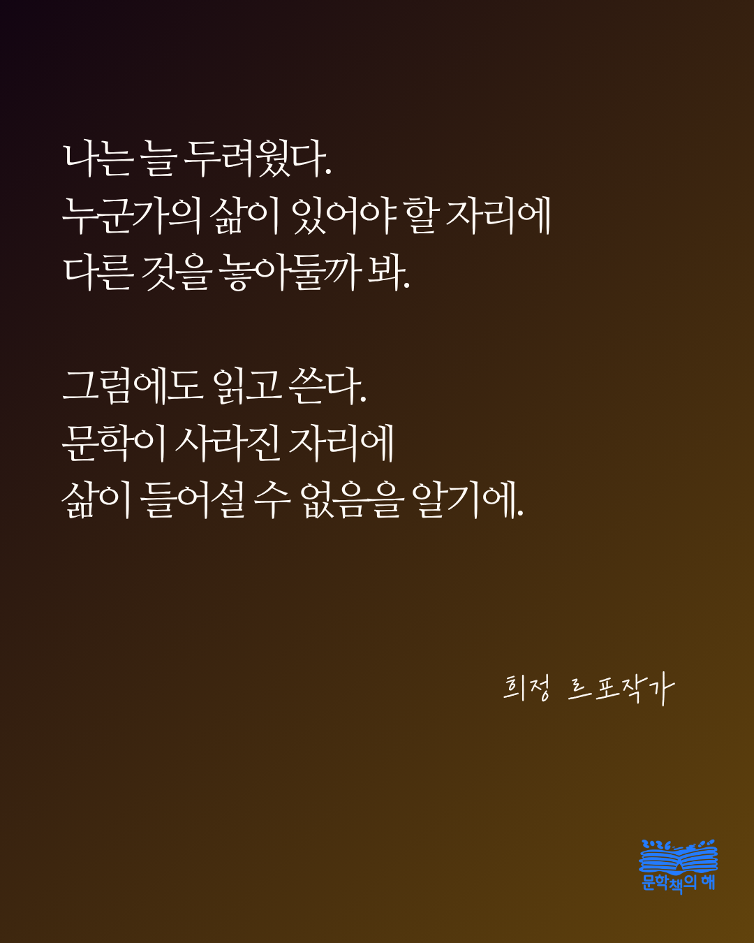 그럼에도 읽고 쓴다. 문학이 사라진 자리에 삶이 들어설 수 없음을 알기에.”